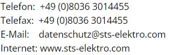 Alle Rechte, einschließlich der Vervielfältigung, Veröffentlichung, Bearbeitung und Übersetzung, bleiben vorbehalten, STS Elektro GmbH.